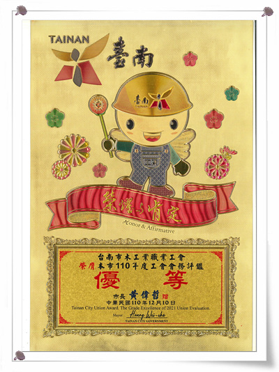 本會榮膺臺南市110年度工會會務評鑑-優等獎