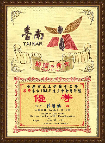 本會榮膺臺南市104年度工會會務評鑑-優等獎