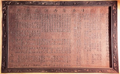 ---------------嘉慶二十三年(西元一八一八年)重建--------------- 根據嘉慶二十三年「重興開基武廟台郡郊舖紳士捐金碑記」