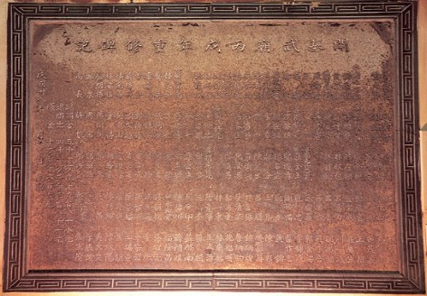 ------民國七十九年(西元一九九O年)重塑正殿關聖帝君神像------ 本廟正殿鎮殿關聖帝君鎮殿神像.何時雕塑已不可考.自嘉慶二十三年整修已來.因久失修.民國七十九年因地震被震毀.隨即重新雕塑 ---------------民國八十年(西元一九九一年)新建春秋樓----------- 民國七十九年初.由於本廟辦公及會議空間之需要.委外建造春秋樓.一樓辦公室.二樓會議室.三樓作為倉庫及工作人員值夜室.
