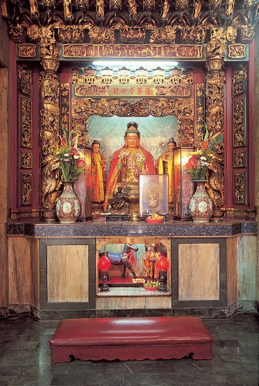 觀音菩薩左右兩側為善才童子及龍女,隨侍在側幫助觀音渡化眾生。為方便普渡眾生常以種種形像現身,即觀音大士在大千世界中有三十二應身。