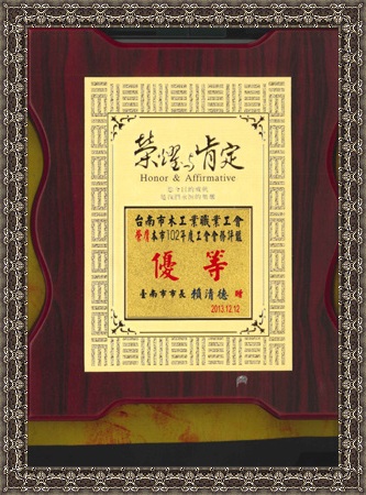 榮獲臺南市102年度工會會務評鑑"優等"獎
