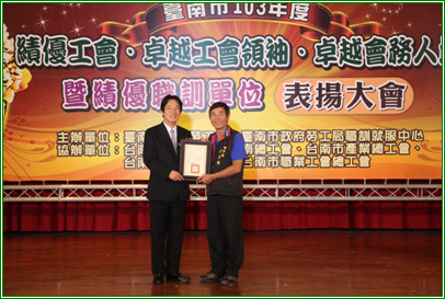 本會榮膺臺南市103年度工會會務評鑑-優等獎