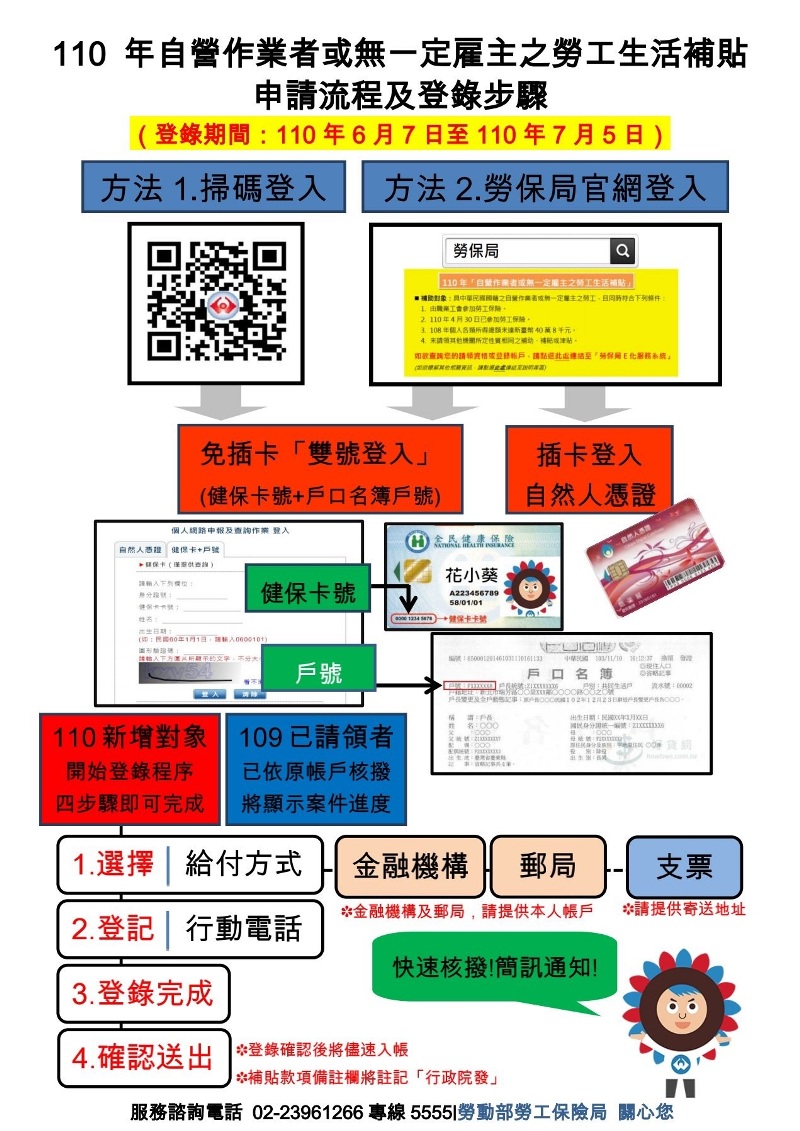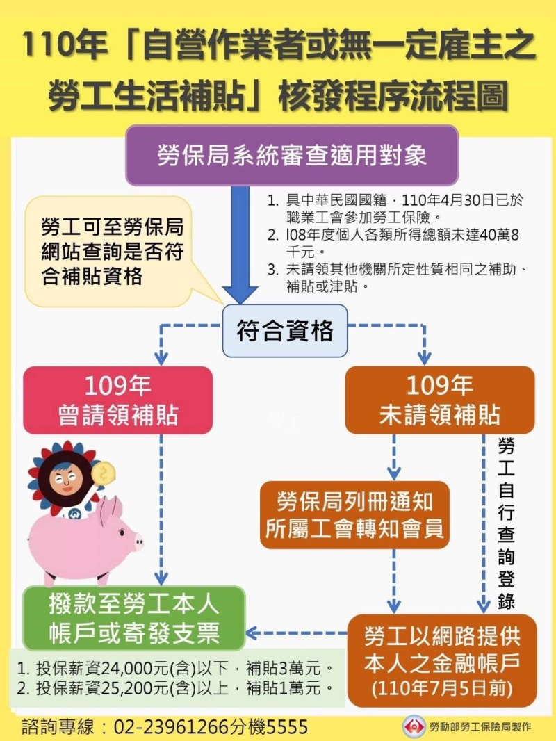 110年"自營作業者或無一定雇主之勞工生活補貼"相關訊息