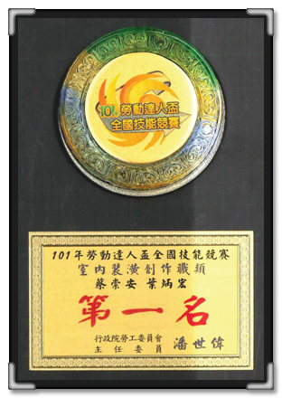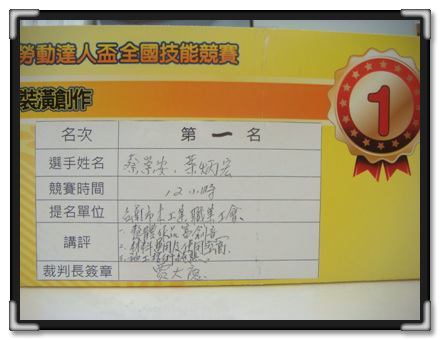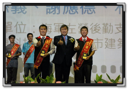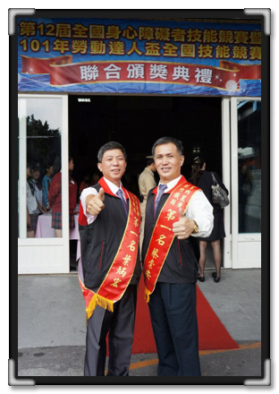 | 與勞委會潘世偉主委會影 | 蔡崇安.葉炳宏選手與作品 |