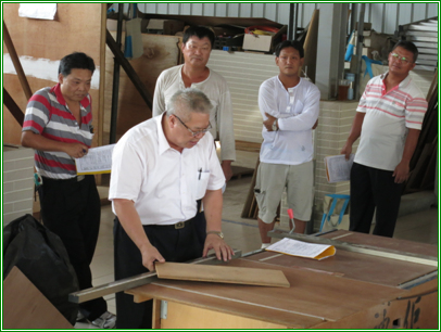 | 術科謝老師示範電動機鋸台操作技巧及安全防護 | 分組演練第1號樓梯模板支撐架設組合施工 |