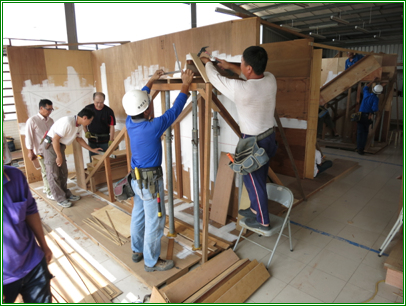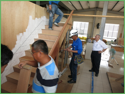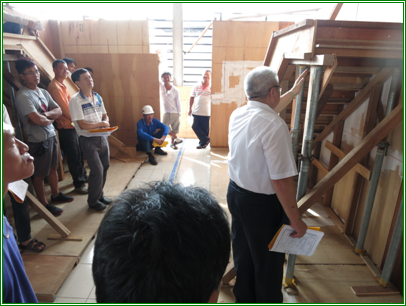 | 分組演練第1號樓梯模板支撐架設組合施工 | 分組操作架設2號雙樓梯施工 |
