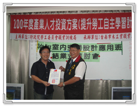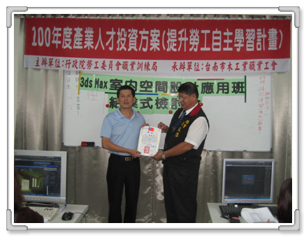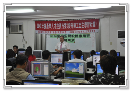 100.11.16--3dsmax班結業式 由楊理事代表主持並勉勵學員學習精神 |
