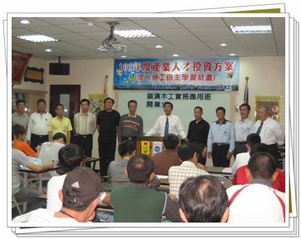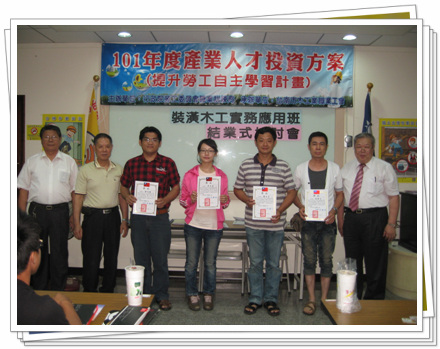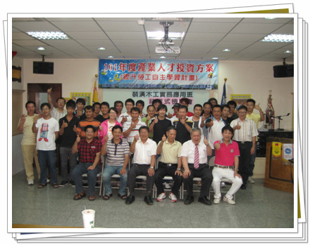 | 頒發成績優異及熱心服務獎項合影 | 裝潢木工班全體學員合影 |