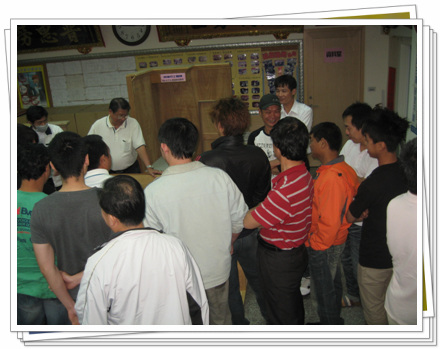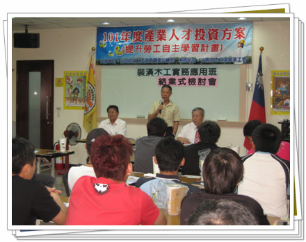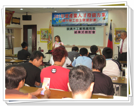 | 邀請東方設計學院黃經理介紹入學管道 | 由歐理事主持裝潢木工班結業式 |
