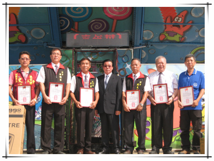 | 由大台南總工會陳理事長頒發愛心志工獎狀 | 由台南市勞工黨部蔡副主委頒發愛心志工獎狀 |