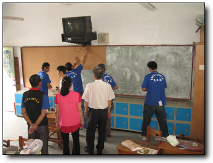 | 方常務帶領,王局長,陳理事長至教室視查修整工作 | 修繕(和順國小佈告欄) |